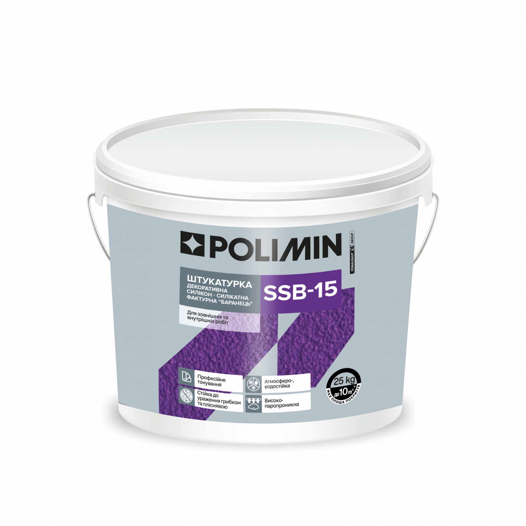 Полимин SSB-15 ШТУКАТУРКА ДЕКОРАТИВНА СИЛІКОН-СИЛІКАТНА ФАКТУРНА “БАРАНЕЦЬ” 1,5 мм, 25 кг